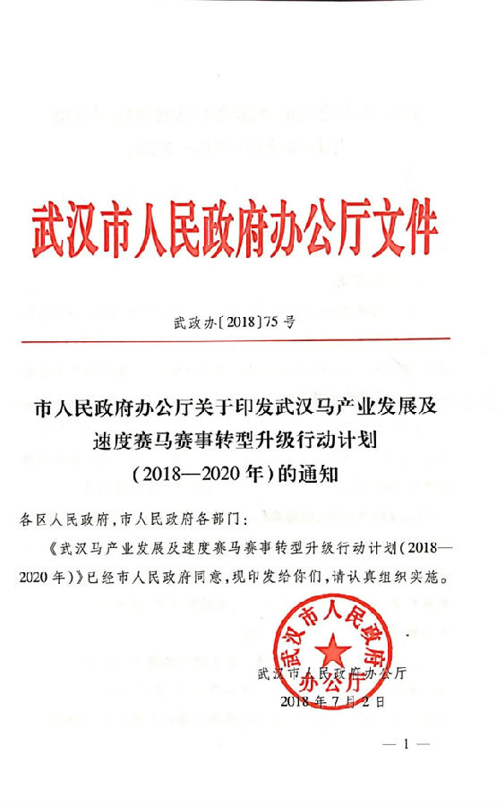建设赛马之都,武汉绝不是空喊口号。2018年,由时任武汉市委副书记、市人民政府常务副市长陈瑞峰担任组长的“武汉市发展马产业打造赛马之都工作领导小组”正式成立,其高规格、专业性极强的领导班子,在全国独树一帜,成为推动武汉赛马不断向前发展的决定性力量。武汉市人民政府办公厅在2018年也发布了《武汉马产业发展及速度赛马赛事转型升级2018—2020年行动计划》。2020年8月,武汉市教育局、武汉市体育局、武汉广播电视台(集团)联合印发武汉市“小小骑士进校园”马术公开课试点工作实施方案。2020年9月,《农业农村部办公厅、国家体育总局办公厅关于印发<全国马产业发展规划(2020-2025)>的通知》正式发布……一系列的政府引领性文件,毫无疑问让武汉的马产业发展进入了快车道。