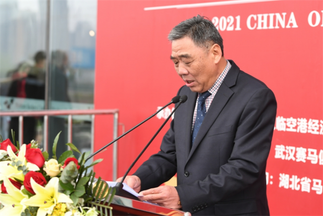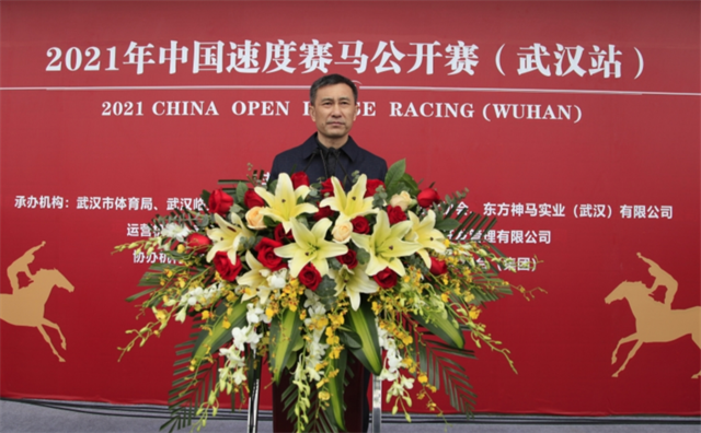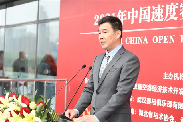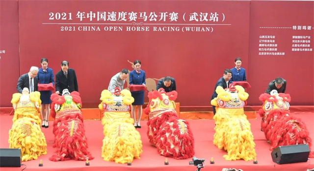 4月3日下午的2021年中国速度赛马公开赛(武汉站)开幕式,武汉市政府给予了高度重视。开幕仪式由武汉市体育局副局长陈林祥主持,武汉马术协会秘书长夏云建、中国马术协会速度赛马委员会副主任陈九庆致欢迎辞,欢迎四海来宾。随后,在武汉市人民政府副秘书长李涛敲响开赛铜锣后,2021年中国速度赛马公开赛正式鸣锣开闸!