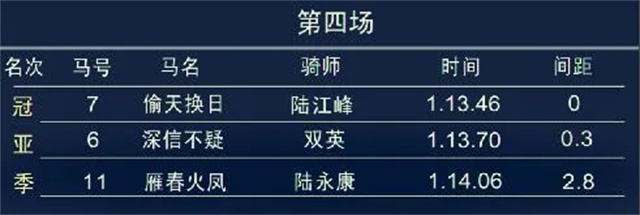 第四场高班千二,和力马业董事长张建道从华宇马业购入的“偷天换日”攻克一众老牌劲驹成功登顶;