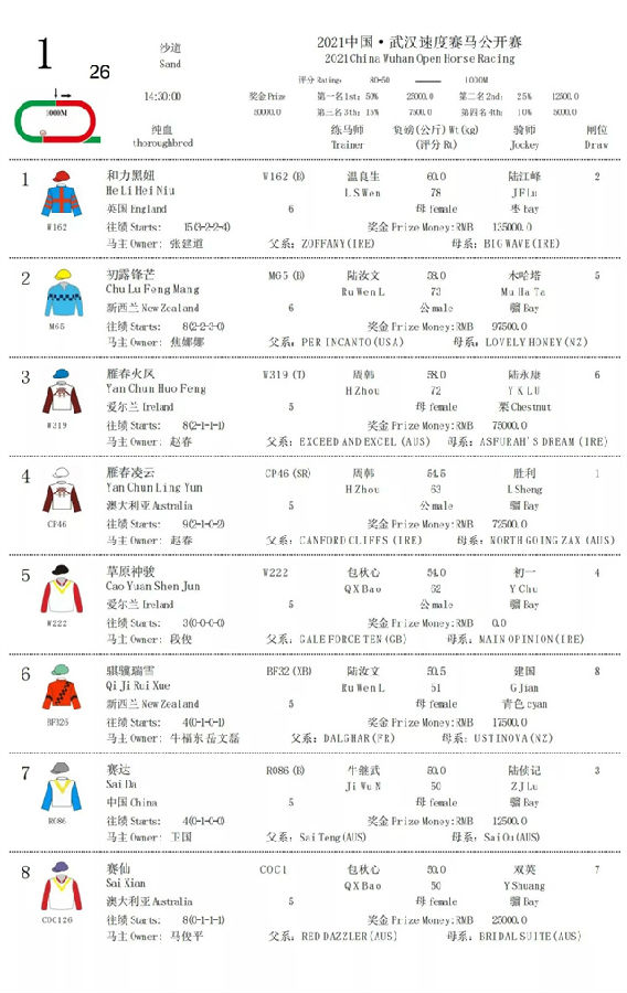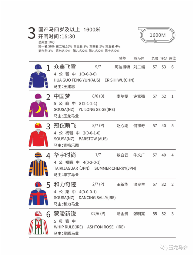 第三场国产马四岁及以上1600米比赛!总奖金10万