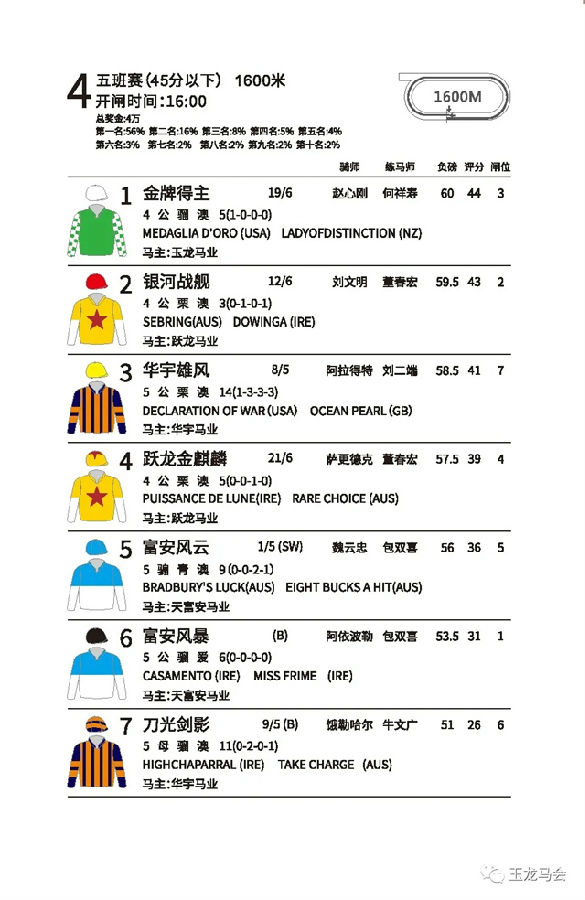 第四场五班赛(45分以下)1600米比赛!总奖金4万