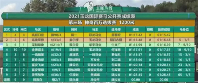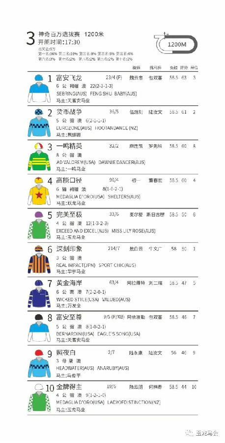 第三场:神奇百万选拔赛1200米 奖金9万