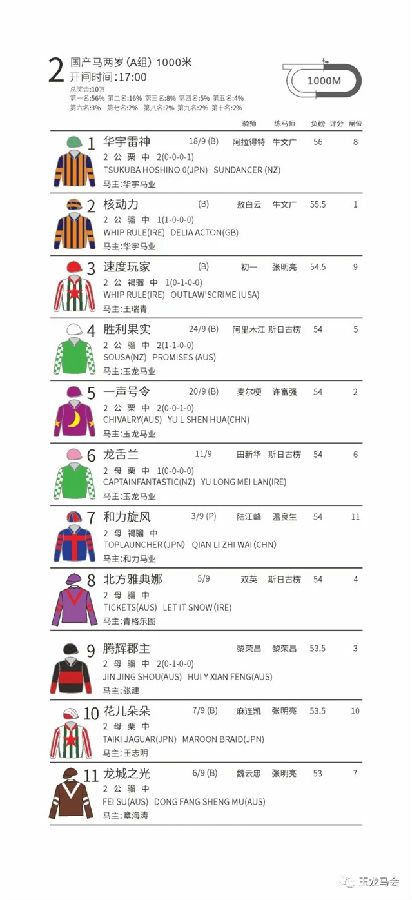 第二场 国产马两岁(A组)排位表