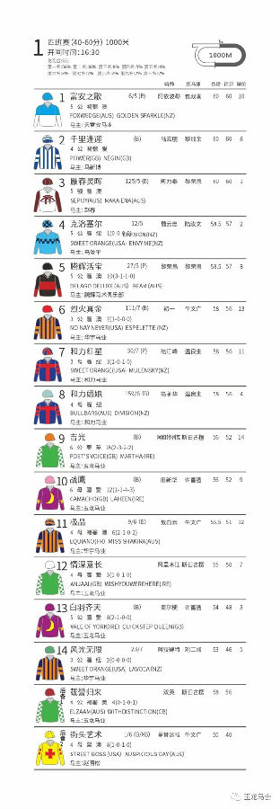 第一场:四班赛(40—60分)1000米 奖金5万