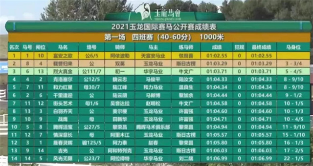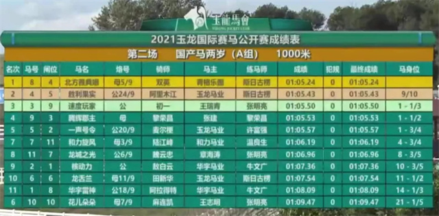赛事资料:玉龙马会