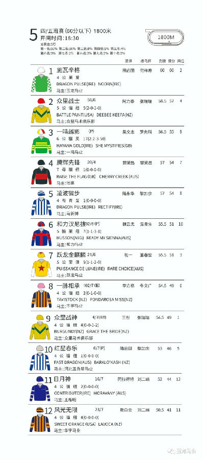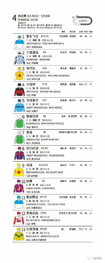 第五场:四/五班赛(60分以下)1800米 奖金5万