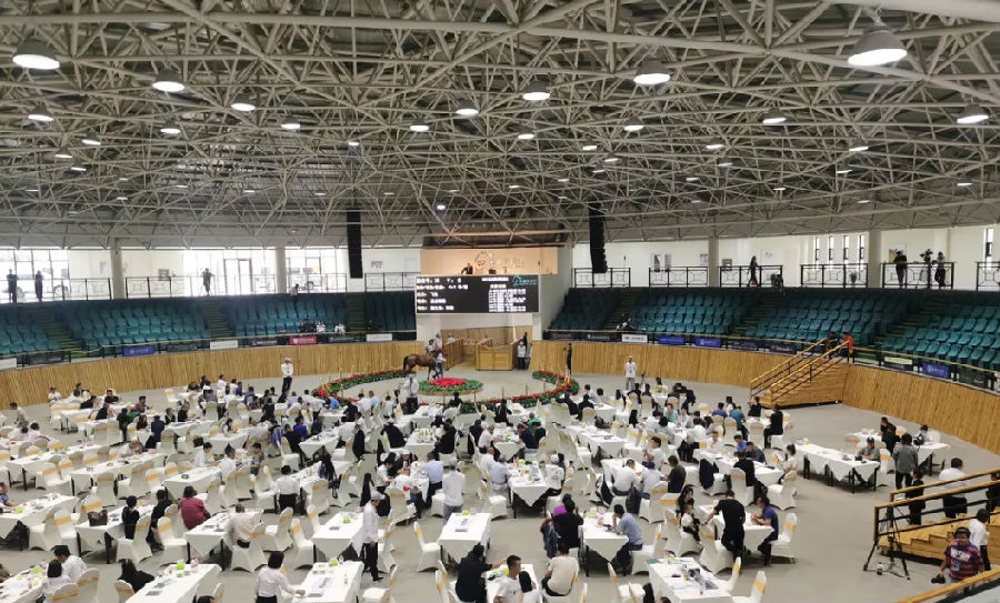 9月3日14:00-19:30,历时五个半小时的2021玉龙秋季拍卖会在山西右玉玉龙国际赛马场拍卖中心盛大开拍!2021玉龙秋季拍卖会共设立了2019年繁育国产纯血马、2020年繁育国产纯血马、现役马、繁育母马和混合马五大拍卖环节,共计108匹名驹佳驷,马种包括:纯血马、汗血马、阿拉伯马、吉普赛马、弗里斯兰马、迷你马等全马种。在2022年奖金升级以及中国马主联盟推动国产马事业发展的大背景下,今年41匹国产马拍卖成为所有人关注的焦点。