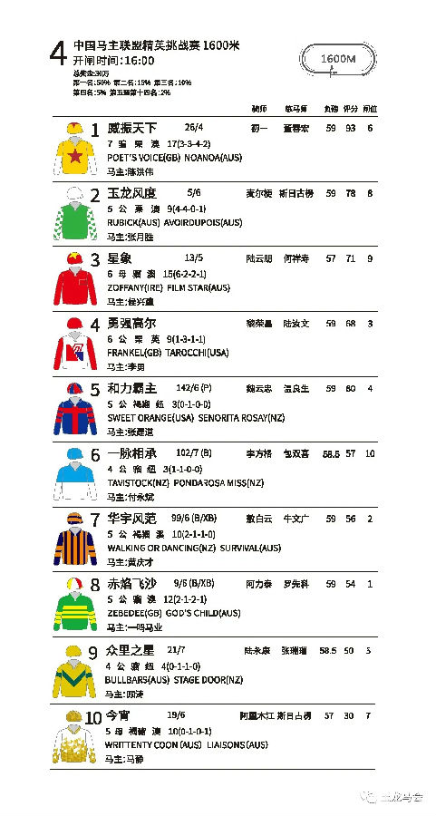 中国马主联盟精英挑战赛:途程1600米,奖金30万