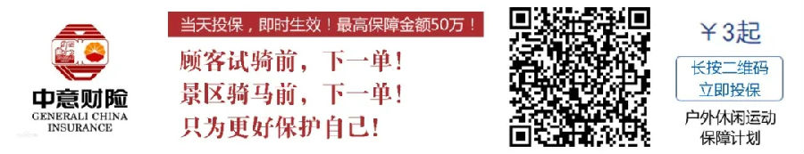 今天为大家推荐两款性价比非常高,简单来说就是同等的价格,比大部分保险的额度都要高。而且实时投保、即时生效,分别针对景区以及马术俱乐部骑马试骑体验,以及专业马术训练和比赛的人群,上马之前,用手机扫码下个单,给自己和家人一份保障——