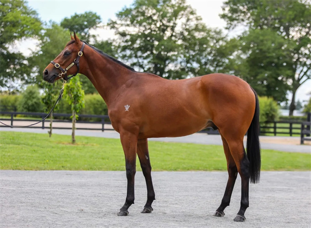 176 号公驹,父系出自日本种公马“神灯光照”(Satono Aladdin),他是安田纪念锦标冠军、“大震撼”之子,也是首季种公马。母系曾经两胜2000米赛事,这是她的第四胎,前面两胎出赛,全部赢马,距离1400-2200米。 这是一匹很出色个体,典型的中长途身材,有一个细节:这匹马快跳时在等另外一匹马,本来时间可以更快!