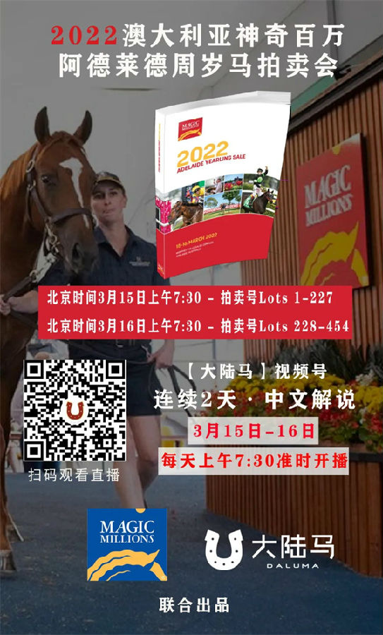 3月15日-16日(本周二、周三),大陆马将为大家带来澳大利亚著名的神奇百万阿德莱德周岁马拍卖会(2022 Adelaide Yearling Sale),朋友们,明天上午7:30,我们不见不散!