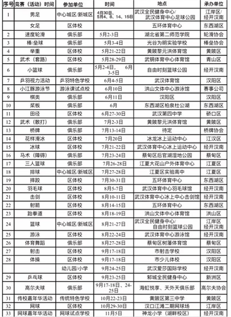 2022年武汉市青少年运动会赛程表