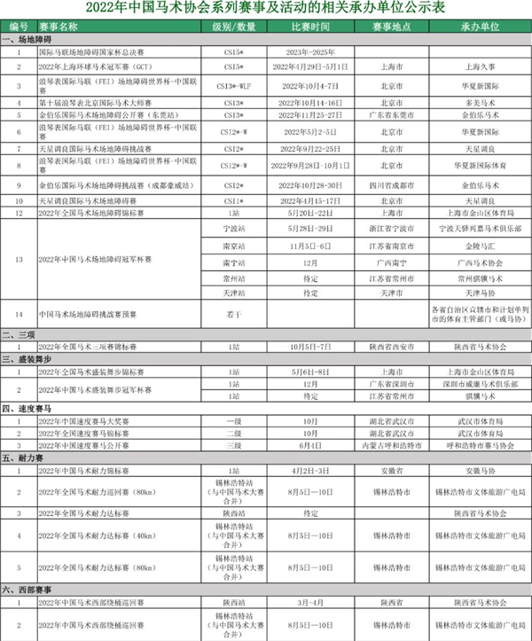 2022中马协赛事活动公示:武汉办300万赛马大奖赛,马术星级赛事受疫情左右