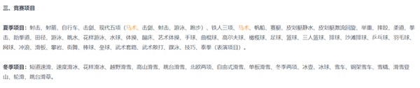 值得关注的是,47个夏季项目中有两项都包含马术:其中一个是马术作为单独比赛项目,另一个则是作为“现代五项”中的的一部分。