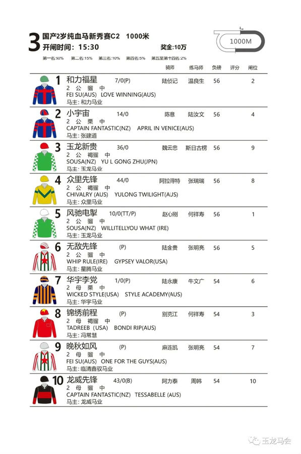 第三场 国产2岁纯血马新秀赛C2