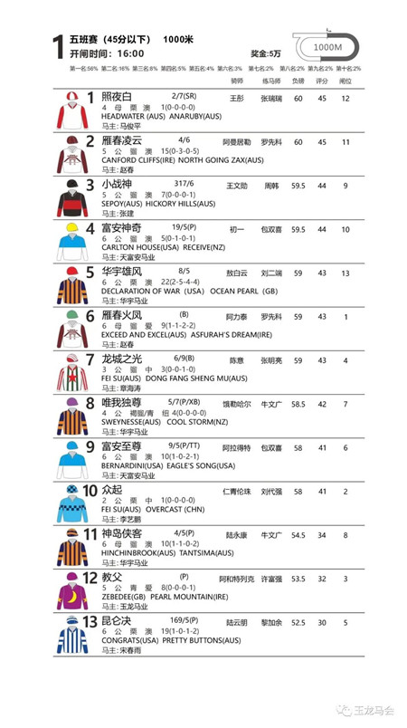 当天共有5场比赛,其中最后一场比赛尤为引入注目,因为本场比赛中的10匹报名马匹中,6岁冠军母马“星象”以最高分负顶磅出赛,无疑是本场比赛最大的夺冠热门。