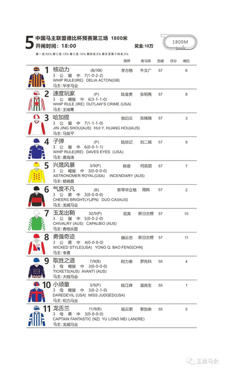 参赛马匹数量:11匹