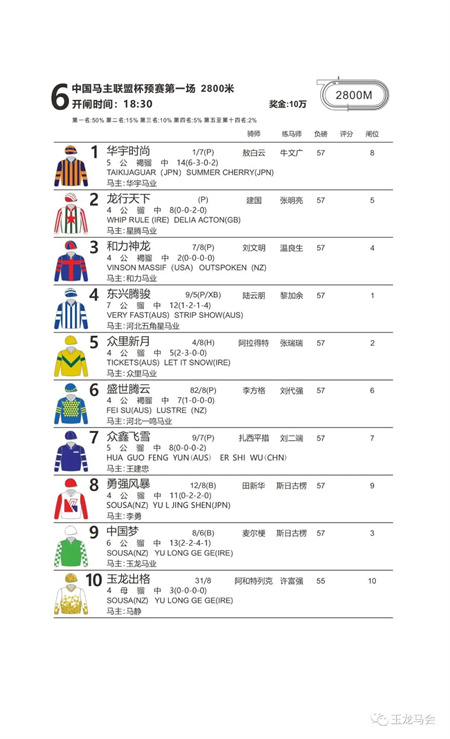 在玉龙马会大力支持下,<大陆马·视频号>将对赛事进行全程直播,8月6日15:30,不见不散!