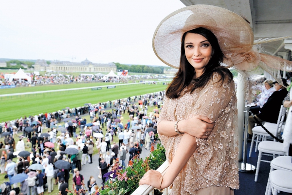 在法国戴安娜赛马大奖赛现场,宝莱坞明星艾西瓦娅·雷应邀给获胜马主颁奖