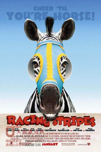 《斑马竞赛》2006年在美国刚一上映就迎来了开门红,很多大人领着孩子观看此片,虽然从头笑到尾的几乎都是未成熟少年。孩子们应该会很喜欢,因为这是一部为他们制作的对口电影,大人们应该也会很喜欢,因为有他们年轻时的梦想……来源:中国马术|赛马|马球第一网络媒体-大陆赛马网http://www.daluma.com