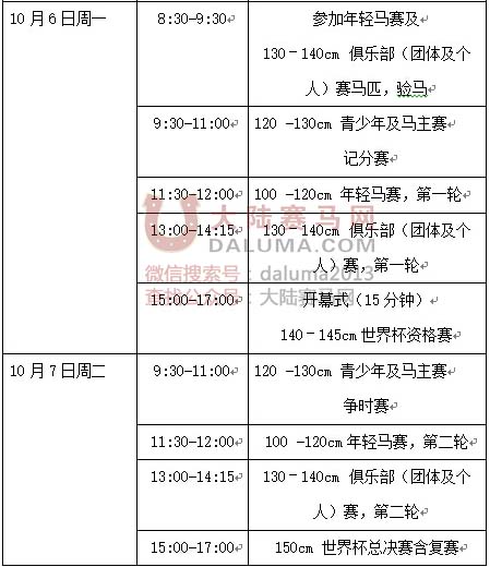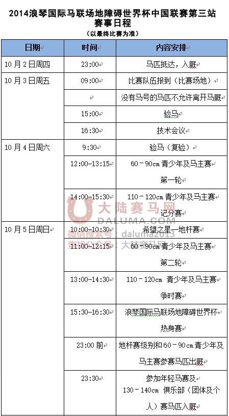 10月4日-7日,2014国际马联场地障碍世界杯中国联赛第三站将在北京朝阳公园马术场开赛。