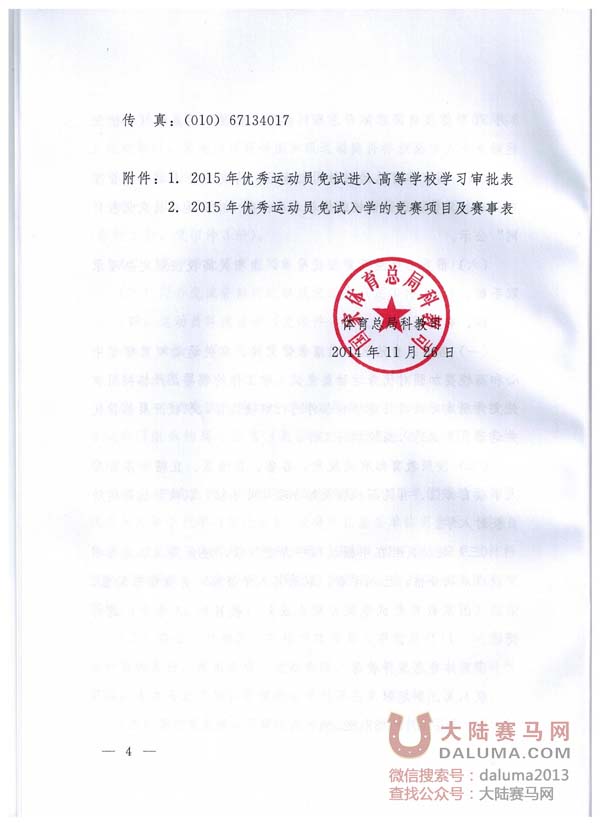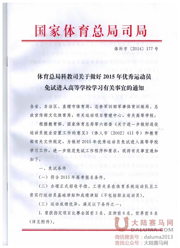 《体育总局科教司关于做好2015年优秀运动员免试进入高等学校学习有关事宜的通知》