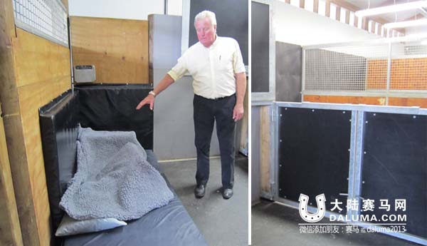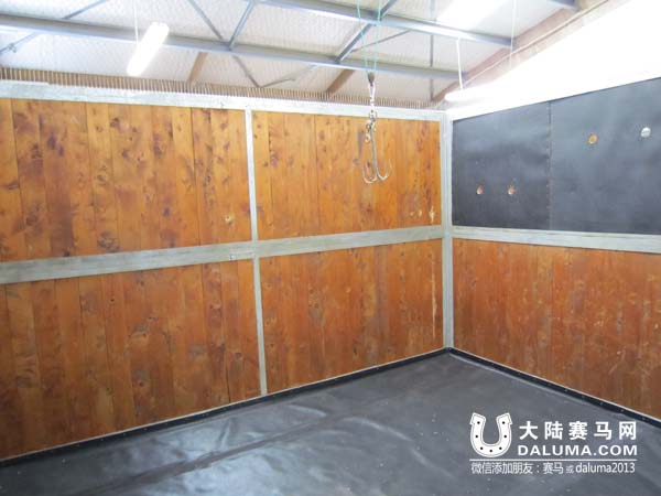 上图是马的“病房”。上方的挂钩是用来挂点滴药瓶的,下方是橡胶软垫,确保马匹不会受伤。