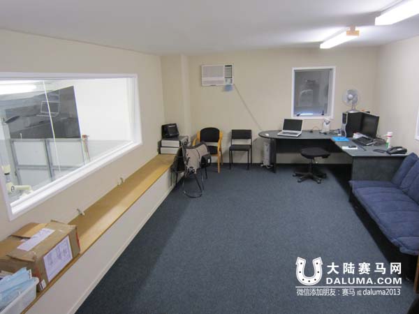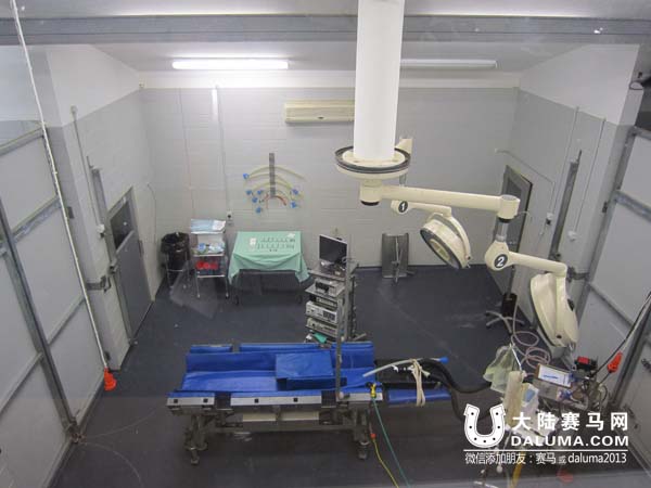 上图是二楼的“家属”观察室,马主可以通过图中左侧的玻璃看到爱马的手术全程,又不打扰医生的手术操作。