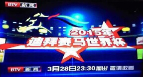 北京时间3月28日23:30,北京电视台新闻频道将播出一年一度“世界上最烧钱的”马坛盛事“2015迪拜赛马世界杯”。今年是迪拜世界杯开始举办的第20周年纪念,也从人工合成跑道转为泥地跑道的第一年。
