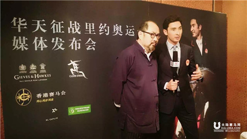 下午两点,一个身材修长,身着帅气西装,五官棱角分明的混血男子准时出现,现场一片沸腾,毫无悬念,他就是名副其实有着中英双重“红三代”之称的马术三项赛骑手华天。
