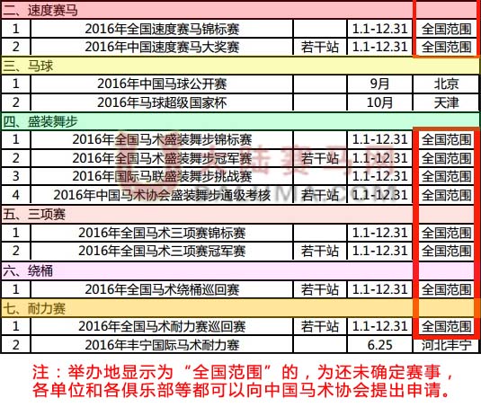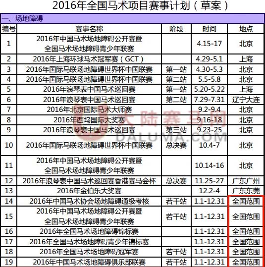 附件:2016年全国马术项目赛事计划(草案)【见上图】