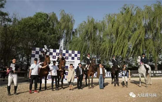 配图:2017“鸟巢之路”冠军杯马术巡回赛第一站在多美马术举行,男女骑手和马匹共同领奖。图/大陆赛马网